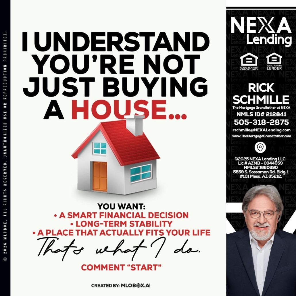 Hi, my name is Rick E Schmille. I’m a Loan Officer with NEXA Lending LLC., offering personalized mortgage solutions, fast customized quotes, great rates and service with integrity.