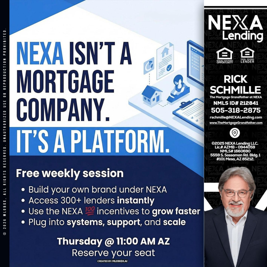 NEXA ISNT - Rick E Schmille -The Mortgage Grandfather at NEXAHi, my name is Rick E Schmille. I’m a Loan Officer with NEXA Lending LLC., offering personalized mortgage solutions, fast customized quotes, great rates and service with integrity.